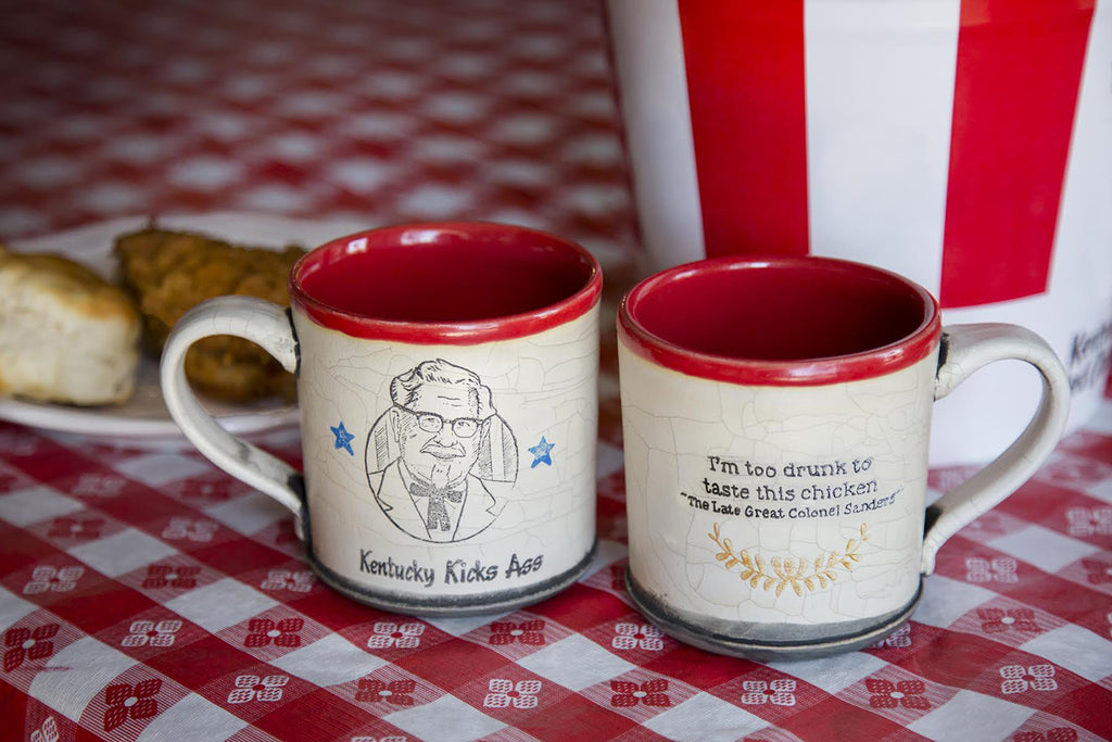 Every true Kentuckian knows the importance of the late great Colonel Sanders. The man that made the words 'Kentucky' and 'fried chicken' household names around the world. The man that made 'Kentucky' big in Japan. The man that made you love him. In celebration of Colonel Sanders and his tasty fried chicken, we're bringing back a limited run of these kick-ass 'Too Drunk to Taste This Chicken' mugs handcrafted right here in good ol' Kentucky by artist David Kring. They'll be available this Wednesday, April 12th at 10am online and at the Kentucky Fun Mall (720 Bryan Avenue)! Perfect for every drunkard chicken-loving Kentuckian, y'all.