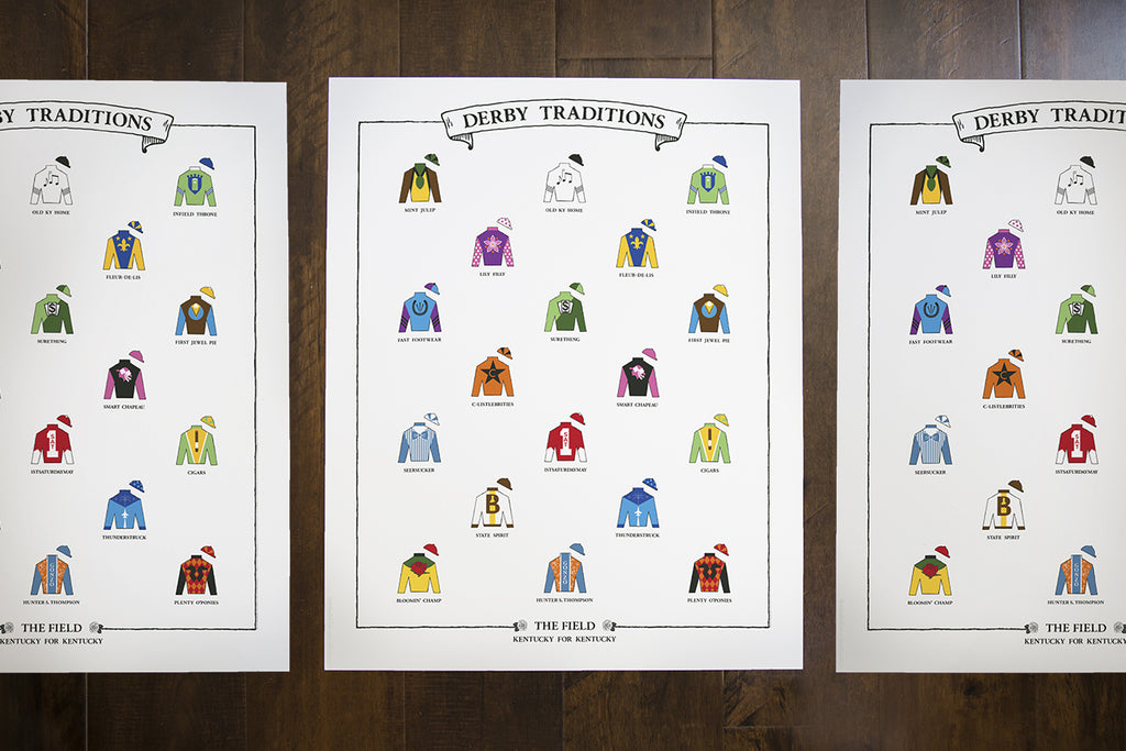 We'll release a limited-run of "Derby Traditions" prints at 10 a.m. this Friday, May 5 in the online shop and at the Kentucky Fun Mall, 720 Bryan Ave. in Lexington. Finished prints measure 19.5″ x 24.25″, offset printed by Thoroughbred Printing in Lexington, Kentucky on French Paper. Each print signed.