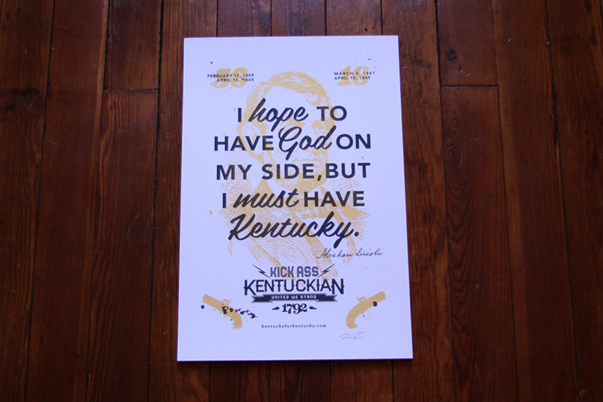 Born in what is now known as Hodgenville, Kentucky, Abraham Lincoln is one of the most kick-ass Kentucky originals. A true Kentucky playa. Tomorrow, we wish him a happy birthday and celebrate all that he has contributed to American history. As a tribute, we're rolling out two sets of prints to share with the world. Both prints are available for purchase on Wed Feb 12th at 10:00AM ET on our website.
