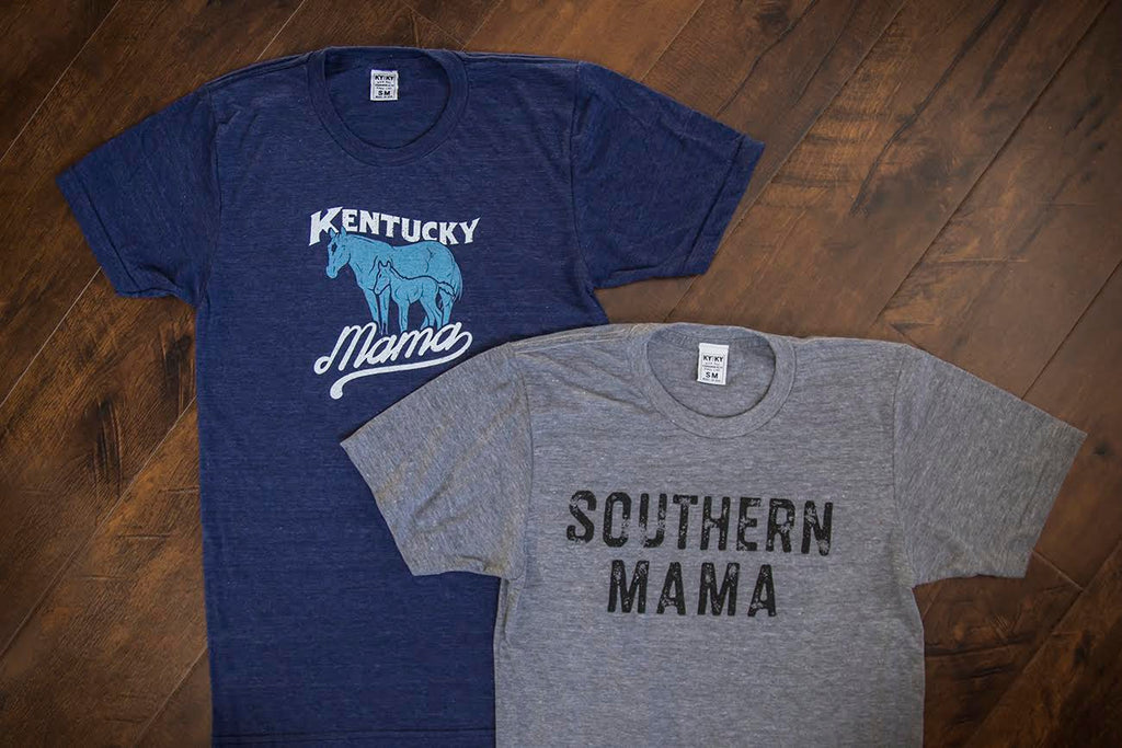 Kentucky mamas kick ass! And we have the perfect Mother's Day gifts for all of the awesome Kentucky mamas out there! This Wednesday, May 3rd, at 10 a.m. we're launching these awesome retro-styled "Kentucky Mama" T-shirts designed by illustrator Rachael Sinclair in a new color scheme! Every Kentucky mama needs one, y'all. We're also coming out with these brand new "Southern Mama" tees designed by The Hern! They'll both be available online this Wednesday at 10am!