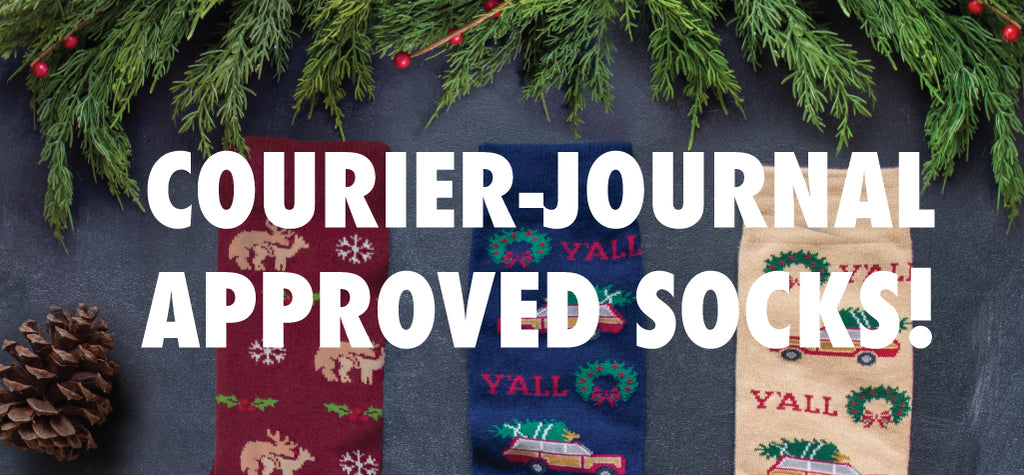 The Courier-Journal in Louisville, Kentucky, approve our Y'alliday socks for gifting! That's right, our "funky" socks "for sports fans to bourbon lovers, musicians, BBQ lovers, dog lovers and more" were one of six Kentucky-made products that made it to the CJ holiday Shop Local gift guide! Check our our brand new Reindeer Humping Socks, along with our classics in the Kentucky for Kentucky Y'ALLIDAY SHOP now open online, offering FREE SHIPPING or CURBSIDE PICKUP!