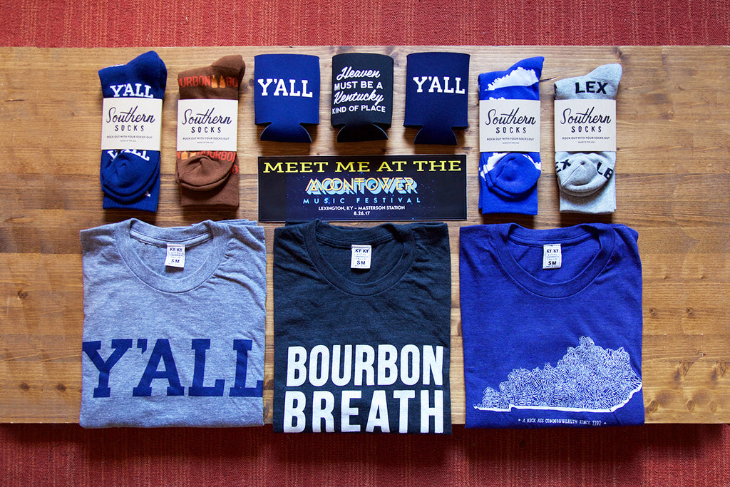 Who's ready for Moontower, y'all?! This Saturday, August 26th from 11am-11pm we'll be getting down at the Moontower Music Festival right here in Lexington! Come join us for a day of killer music, food and fun at Masterson Station Park! We'll be setting up shop with all your favorite Kentucky gear, bourbon gear, Y'ALL gear and Southern Socks. We'll also be selling these kick-ass Moontower tees!