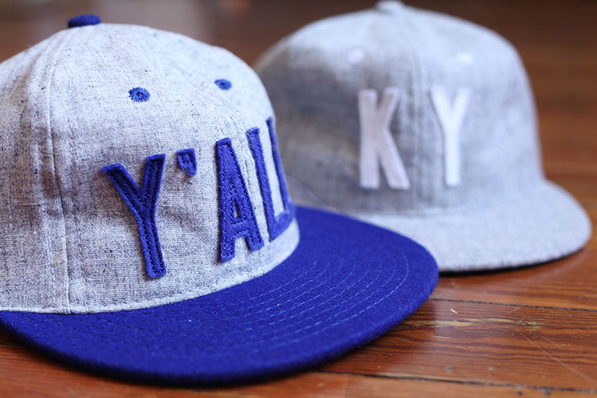 We've got a fresh new batch of some kick-ass custom Ebbets Field Flannels vintage 'KY' baseball caps coming soon (hot new colorway). We've also got some fresh new Ebbets 'Y'ALL' baseball caps coming soon too. That's right, Y'ALL heard that right. Some kick-ass Y'ALL baseball caps coming soon. KY Y'ALL, cheers to the Commonwealth. Made in the USA by Ebbets Field Flannels. Hell yes.
