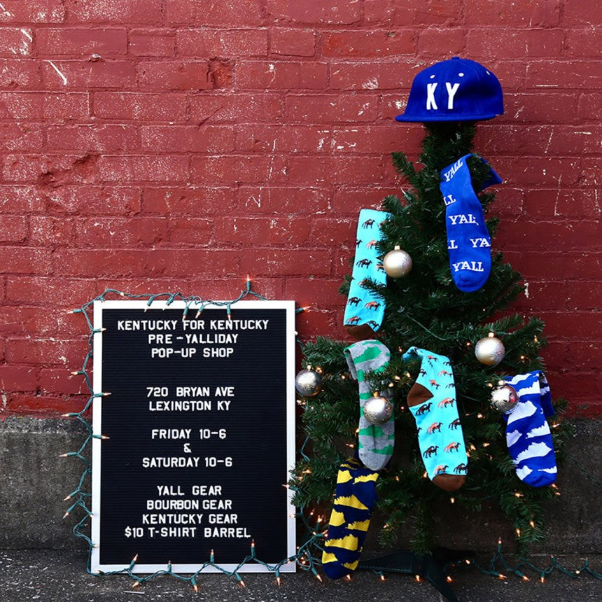 It's that time again, y'all. The holiday season is upon us! We'll be getting into the spirit this weekend at the Kentucky for Kentucky Fun Mall with our epic Pre-Y'ALLidays Pop-Up Shop! We'll be serving up the Commonwealth's freshest Kentucky gear, Y'ALL gear and Bourbon gear. We'll have a big bourbon barrel loaded up with $10 t-shirts and will be giving away free koozies with every purchase. This event will be going on from 10AM-6PM this Friday and Saturday, so come ready to get all of that Christmas shopping out of the way! We'll hook you up with the freshest Kentucky gear for all of those kick-ass Kentuckians in your life.