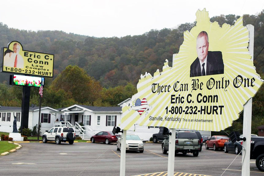 He paid a half-million dollars to put a giant replica of the Lincoln Memorial in the parking lot of a gang of welded together trailers that he calls "The Eric C. Conn Law Complex" because he thought it would be fun.